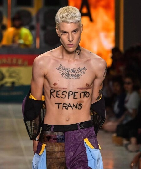 Nascido em Brasília, o modelo de 26 anos, Sam Porto, foi o primeiro homem trans a desfiliar no “São Paulo Fashion Week”, em 2019. Naquela edição, a imagem de Sam na passarela logo se tornou emblemática em um momento em que a falta de representatividade de pessoas transgêneras na indústria da moda não era sentida como um problema. Recentemente, é estrela da campanha de cuecas para grife Calvin Klein.